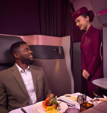 Die vielfach ausgezeichnete Qsuite bietet vollständig schließbare Türen, flexible Quad-Anordnungen für Familien/Gruppen und das weltweit erste Doppelbett in der Business Class. Die Qsuite setzt Maßstäbe in Sachen Privatsphäre und Komfort – prüfe bei der Buchung die Verfügbarkeit auf deiner Strecke.