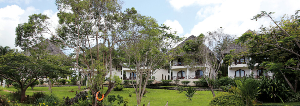 Das komfortable Resort an Sansibars Ostküste liegt in einem schönen Garten und direkt am weißen Sandstrand.
