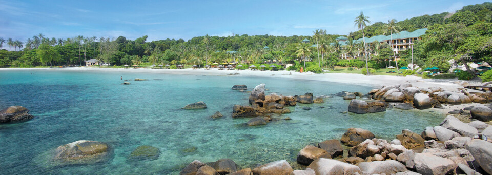 Lage: Das Resort liegt am weißen Sandstrand der Tanjung-Said-Bucht mit Blick auf das Südchinesische Meer. Die Umgebung lädt zu Ausflügen in die tropische Vegetation und in die Mangrovenwälder ein. Die Anreise erfolgt ab Singapur mit einem Hochgeschwindigkeitskatamaran (45 Minuten Fahrtzeit) und dem anschließenden Transfer vom Fährterminal zum Resort.
