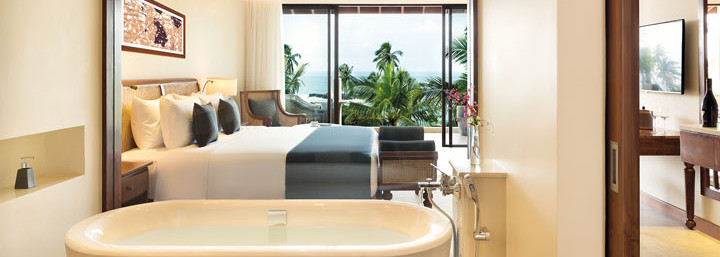 Zimmer: Die insgesamt 48 luxuriöse Villen (50 m²), erbaut aus einheimischen Materialien, verschmelzen harmonisch mit der natürlichen Umgebung. Alle Villen bieten absolute Privatsphäre, eine private Terrasse und Meerblick. Lagoon-Cabin: Klimaanlage, Deckenventilator, Bad/Regendusche/WC, Föhn, TV/DVD, Telefon, WLAN (kostenfrei), Minibar, Kaffee-/Teezubereiter und Safe. Jungle-Cabin: Außerdem mit Außendusche. Beach-Cabin: Außerdem mit eigenem Weg zum Privatstrand.