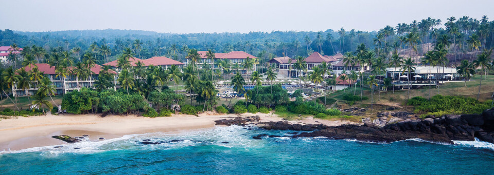 Lage: Das ruhig gelegene Resort befindet sich an der südlichen Spitze Sri Lankas direkt am privaten Sandstrand. Es liegt inmitten einer Kokosnussplantage mit idyllischer Landschaft und bietet einen herrlichen Blick auf das Meer. Die Entfernung zum Flughafen in Colombo beträgt ca. 220 km.
