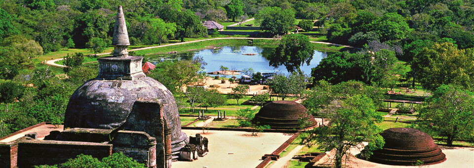 Polonnaruwa prägte als zweite Hauptstadt das singhalesische Reich und erlebte seine Blütezeit im 12. Jahrhundert. Der prächtige Königspalast, die Stupas, Tempel, Buddha-Statuen und die Parkanlagen berichten aus vergangenen Tagen der Singhalesen und faszinieren nicht nur Geschichtsliebhaber. Denn in der nördlichen Provinz, ungefähr 140 km von Kandy entfernt, bietet Polonnaruwa mit seinen von wilder Vegetation umwachsenen königlichen Ruinen den schönsten archäologischen Park Sri Lankas. 1982 wurde die damalige Hauptstadt zum UNESCO-Weltkulturerbe erklärt und zählt heute zu einer der beliebtesten Touristenattraktionen, die Besucher in eine alte Geschichte eintauchen lässt.
