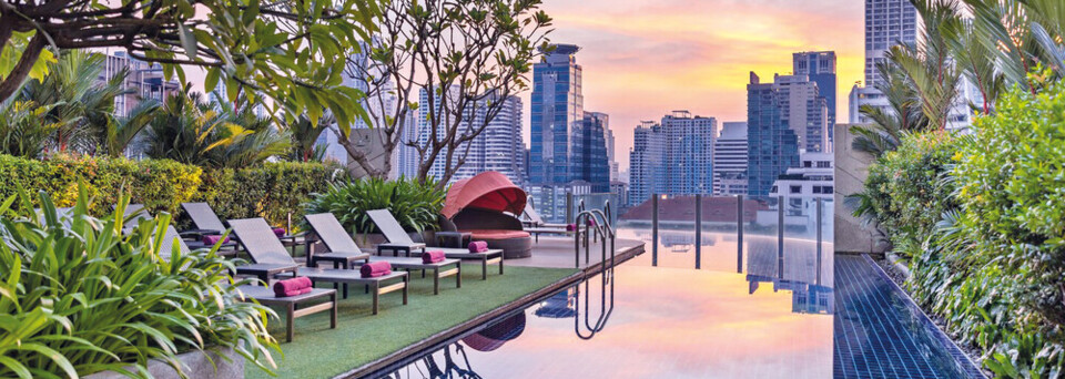 Lage: Zentral gelegenes Designhotel mit innovativem Konzept und technologischen Raffinessen. Zur Marriott-Hotelkette gehörend. Jeweils 5 Gehminuten zur Skytrain- und MRT-Station, 31 km zum Flughafen.