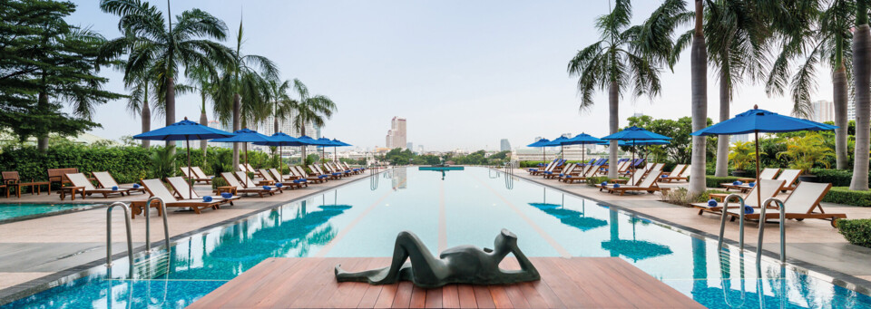 Dieses Hotel liegt am Ufer des Chao Phraya Rivers und ist von einem Landschaftsgarten umgeben.