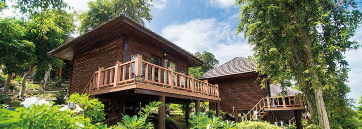 Zimmer: Die 100 aus Teakholz erbauten Bungalows schmiegen sich an den Hang, viele mit wunderbarem Ausblick auf das Meer. Ausstattung: Klimaanlage, Dusche/WC, Föhn, TV, Telefon, WLAN (kostenfrei), Minibar, Kaffee-/Teezubereiter, Safe und möbelierter Balkon. Front-Side-Superior-/Garden-Superior-Zimmer: 30 m². Nur 2 Minuten vom Strand und von der Rezeption entfernt. Front-Side-Deluxe-/Seaview-Deluxe-Zimmer: 55 m². Sea-View-Zimmer liegen am Hang über den Front-Side-Zimmern. Superior-Zimmer mit partiellem Meerblick: 38 m². Neuere Bungalows, die in der obersten Ebene des Hügels liegen.
