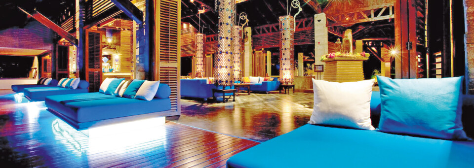 Zimmer: Die 185 im außergewöhnlichen Design gestalteten Wohneinheiten verfügen über Bad/Dusche/WC, Klimaanlage, TV/DVD, WLAN (kostenfrei), Minibar, Kaffee-/Teezubereiter und Safe. D-Buk-Family-Suite: 76 m². Terrasse/Balkon mit Gartenblick. Tagesbett. Pearl-Bed-Suite: 56 - 65 m². Balkon mit Gartenblick. Badezimmer mit großer Außenbadewanne. Private-Pool-Suite: 112 m². Badezimmer mit großer Außenbadewanne. Pool im eigenen kleinen Garten.