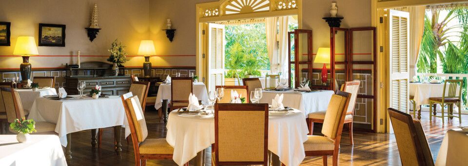 Hotel: Restaurant „The Pepper Tree“ mit Blick auf den Strand und Garten, welches für hochwertige, innovative Kreationen steht. Im Freien gelegenes Restaurant „Le Jardin“ mit Auswahl an Pizzen und einfachen, gesunden Gerichten vor einer atemberaubenden Meereskulisse. Jeweils einmal wöchentlich Barbecue am Strand und vietnamesischer Street-Food-Abend. Außerdem: Bar, Souvenirshop und WLAN-Zugang (kostenfrei) im gesamten Resort.