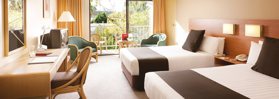 Hotel: Das Restaurant "Hanuman", zum Mittag- und Abendessen geöffnet, ist sowohl bei den Einheimischen als auch bei den Hotelgästen für seine ausgezeichnete Küche mit thailändischen und indischen Einflüssen beliebt. Im Bistro "Balloons", zum Frühstück und Abendessen geöffnet, werden Ihnen australische Speisen serviert. Eine Vielzahl an Aktivitäten sorgt für Kurzweil. Dazu gehören der Swimmingpool, der Whirlpool, das voll ausgestattete Fitnesscenter, der Fahrradverleih, der Tennisplatz und die Sauna. Auf dem Hotelgelände befinden sich außerdem ein Businesscenter mit Internetzugang, ein Grillplatz, der Zimmerservice sowie Parkmöglichkeiten.