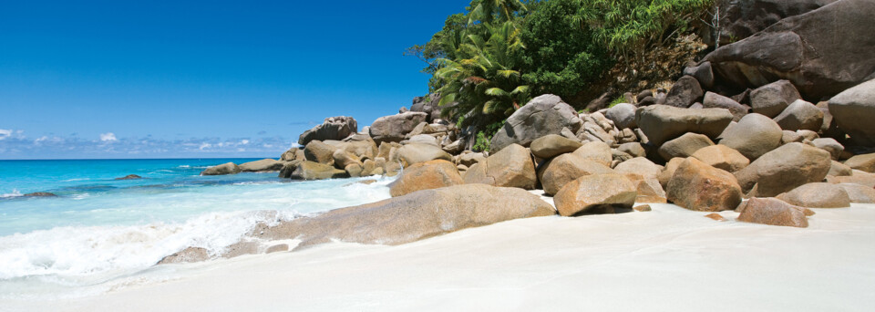 Lage: Das Hotel erfreut sich schönster Lage an der Nordwestküste der Insel. Man geht ca. 20 min zum Aquarium, der Ort Grand Anse ist ca. 5 km entfernt und das Naturschutzgebiet Vallée de Mai ca. 7 km. Die Nachbarinseln sind mit dem Boot ca. 10 km entfernt, zum Flughafen Praslin ist man nur etwa 5 min unterwegs.