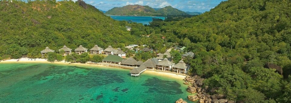 Das Hotel liegt an einer malerischen Bucht mit Blick auf die Insel Curieuse und den Marine National Park.