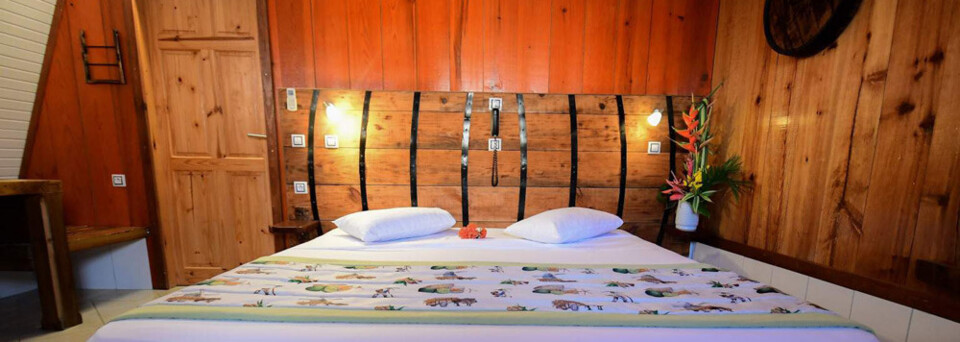 Hotel: Das Hotel Bambou besteht aus kleinen Bungalows im kreolischen Stil, die sich in der grünen Gartenalage verteilen. Das Restaurant mit exotischer Küche und die Bar liegen direkt am Strand, von wo Sie einen tollen Ausblick auf die Bucht genießen können. Während Ihres Aufenthaltes genießen Sie die Vorzüge einer Halbpension und speisen morgens sowie abends im Hotelrestaurant. Des Weiteren stehen Ihnen ein Sonnendeck mit Swimmingpool und Liegestühlen sowie Lounges am Strand zur Verfügung. WLAN sowie eine Tischtennisplatte sind ebenfalls vorhanden. In der Hochsaison werden täglich am Abend folkloristische Shows und Live-Musik angeboten.