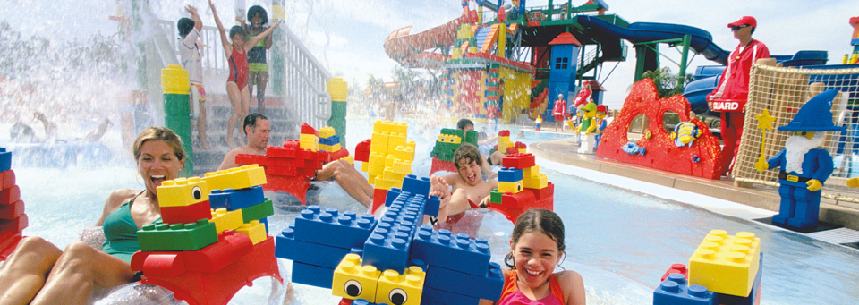 Purer Badespaß erwartet die ganze Familie im LEGOLAND® Water Park. Mehr als 20 Wasserrutschen, Wasserspielplätze und ein Wellenbad bringen nicht nur Kinderaugen zum Leuchten. In diesem Wasserpark können Sie sich ihr individuelles Floss zusammenbauen und dann um die Wette fahren. Ideal für Familien mit Kindern zwischen 2 bis 12 Jahren.
